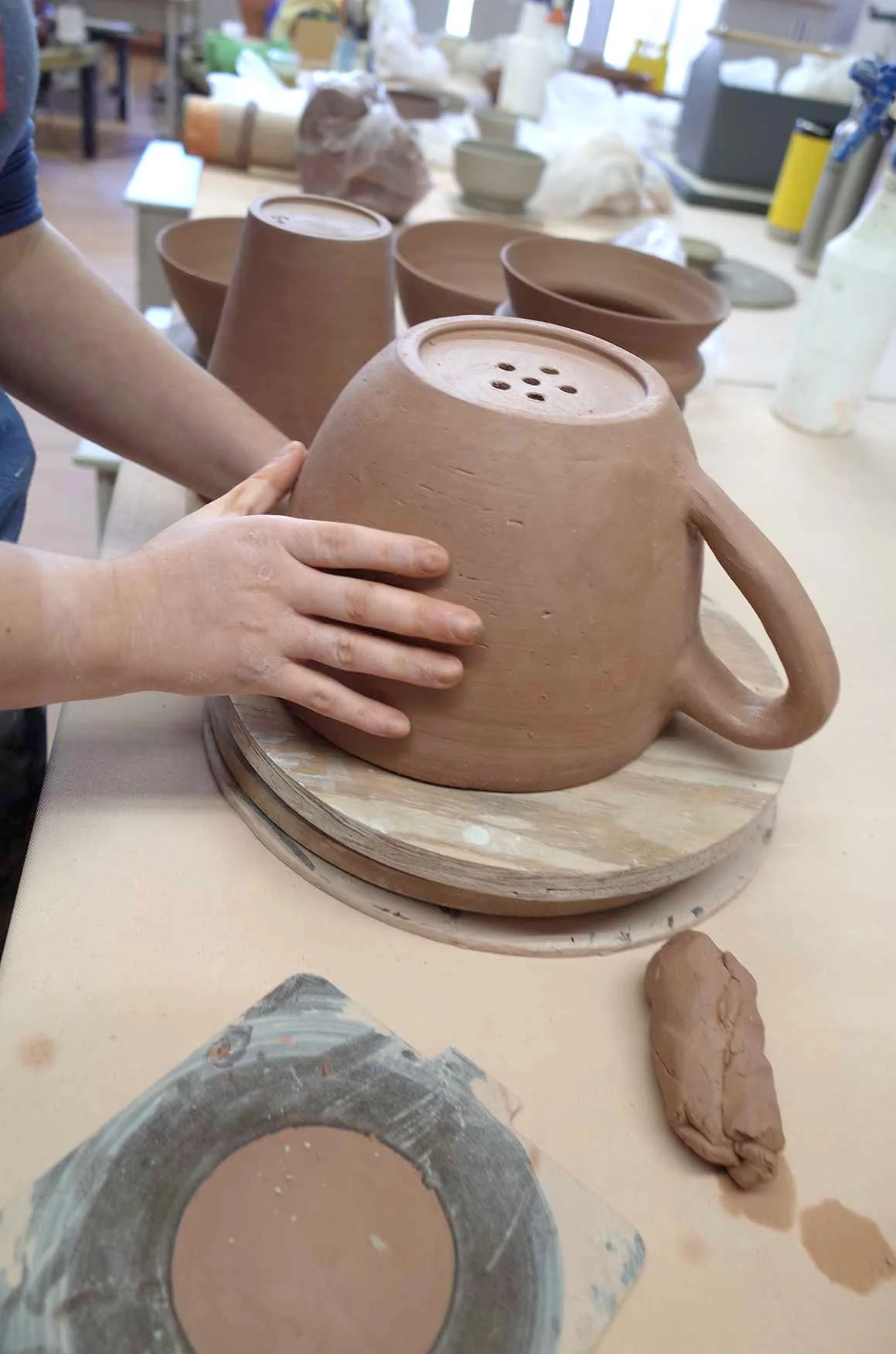 I have worked in many different mediums, but working with ceramics feels very natural. I love the meditative nature of throwing on the wheel and the ability to design the function and experience of everyday objects. I have been interested in ceramics from a young age. I attended a pottery camp as a child and loved everything about it. After returning to pottery as an adult I was hooked again. I have always enjoyed taking apart objects and reconstructing them, but now I am able to study the object and make a mug, vase, or plate from scratch.