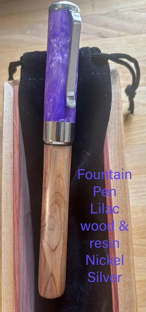 Lauren works in several media, woodworking, boxes, etc., but always comes back to Pens. Something about the precision and metal work draws him in. Eschewing “Kit Pen projects Lauren has spent 15 years mastering the art of “Kit-less pens.” In making a kit-less pen, the maker manufactures nearly all the components his or herself. All metal work, threading, resin, and wood finishing is done at the design of the maker. That is no small feat. A pen by Lauren utilizes epoxy resins hand custom mixed and dyed by Lauren. All wood used is supported by stainless steel rod the length of the pen. The resin pens are also supported with steel.