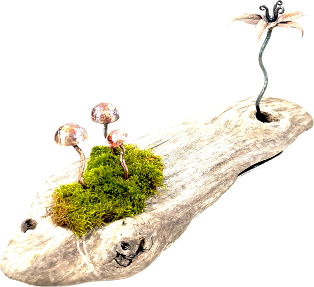 Experience the extraordinary craftsmanship and vision of ‘Dave Gonzo’ in "Gaia's Beauty." This exhibition showcases Dave's innovative approach to metal work, where different alloys are manipulated into creative and stunning, three-dimensional sculptures that resemble the beauty of which Mother Earth (Gaia) births. Each piece invites visual exploration, revealing a variety of metals and delicate details within the unique world of inorganic elements melded with the breathtaking forms of nature.